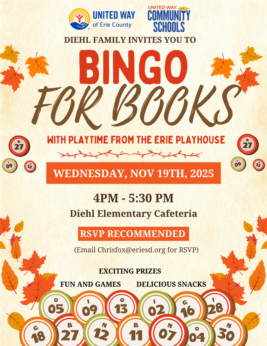 John C. Diehl Elementary School is a neighborhood public elementary school located at 2327 Fairmont Parkway in Erie, Pennsylvania. We currently have about 500 students in grades Pre-Kindergarten through Grade Five.