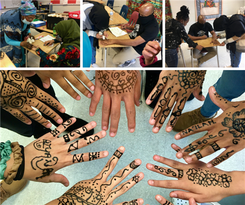 Students at East Middle School are celebrating Black History Month in partnership with Erie Arts and Culture, artist Marquis Wallace and guest henna artist Nialwalk.Marquis and Nialwalk worked with East's Newcomer Academy students to learn about the multicultural roots of henna design and art stemming from Africa, Egypt, Nepal. Gorgeous work!Erie's Public Schools Cyber Choice Academy (at Patrick J. DiPaolo Student Success Center)