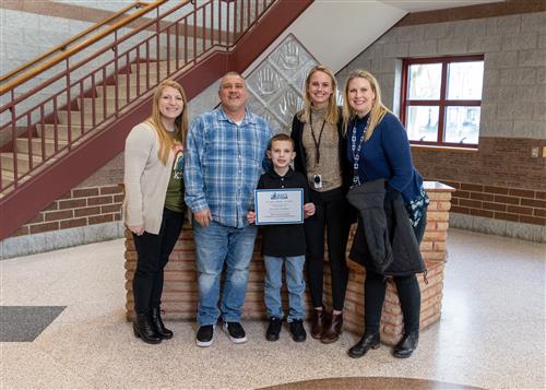 "Kayden has been nominated for his hard work and dedication to learning. He has shown great work ethic and excitement in our classroom. Kayden has worked hard on practicing his reading and writing. He is always kind to those around him and is a great example of what perseverance looks like. He has inspired others around him to try their best always. Kayden has made these improvement over the course of the last two months. He went from being an office visitor to an office ambassador. He is proud of his hard work and loves to show off by reading a whole book to his peers. Kayden's hard work and dedication have earned him this recognition we are all very proud of him."