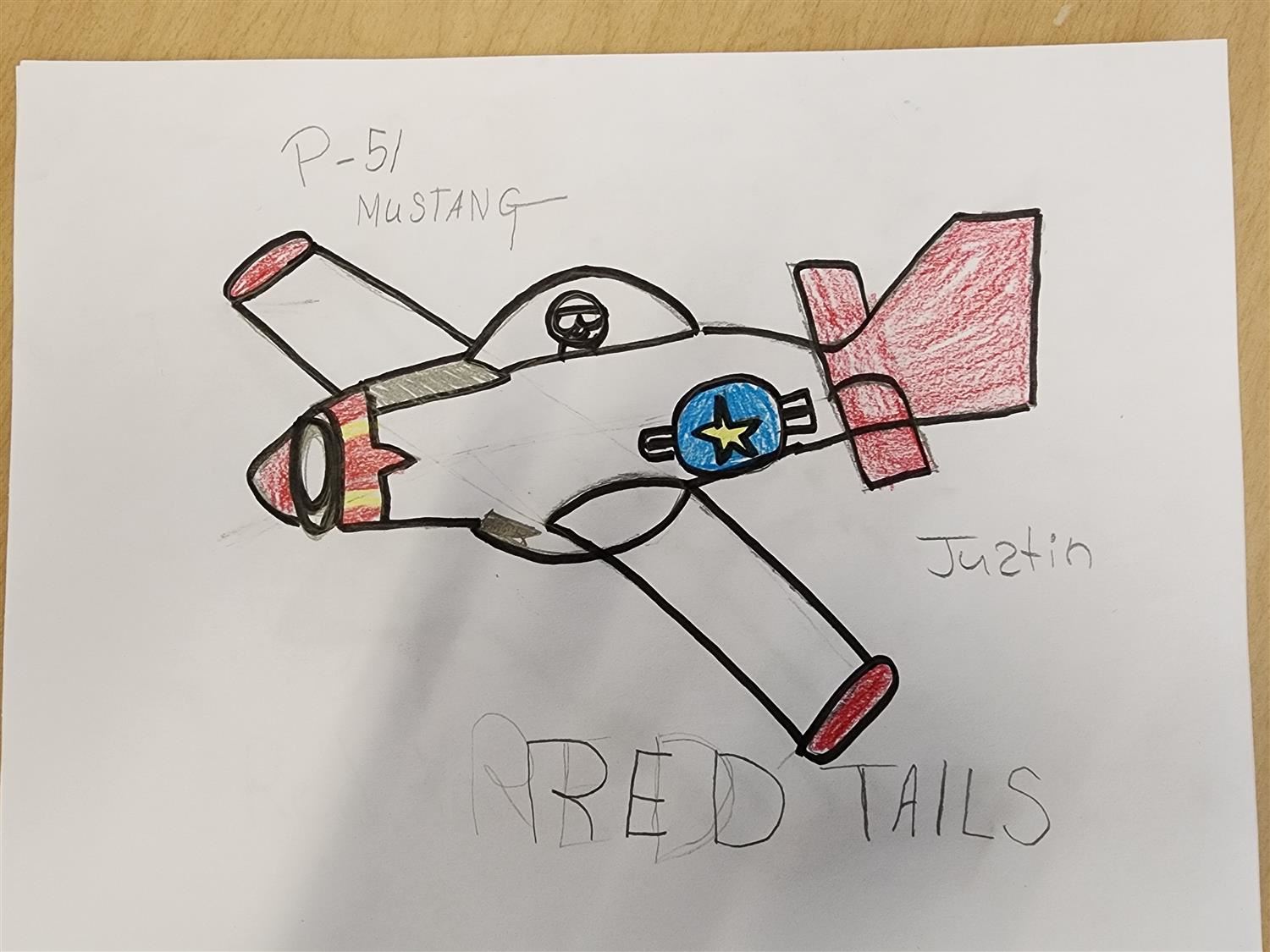 Students in Mr. Knapp’s art class at Jefferson Elementary learned about the Tuskegee Airmen and their accomplishments, and watched a short clip of the movie, Red Tails. Each student was taught how to draw their own P-51 Mustang airplane. Check out Mr. Knapp's example drawing and the work of our budding student artists!