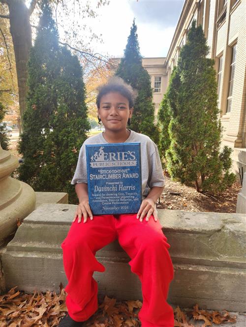 Erie's Public Schools strives to always celebrate the success of our students. As part of that initiative, the Stairclimber Award is presented monthly at regular School Board meetings (from October through May) to one student from each building, recognizing their tenacity, grit and perseverance toward making improvements in their ABC's -- Attendance, Behavior and Classroom Performance.